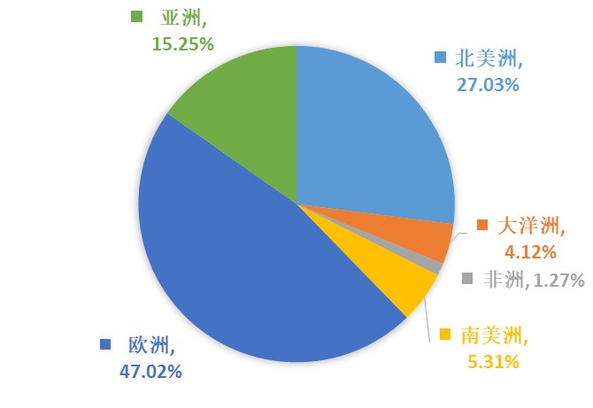 园林机械出口排名前三的地区是欧洲、北美洲和亚洲,分别占出口总额的47.02%、27.03%、15.25%。向美国、欧盟、东盟三大贸易伙伴出口额,分别占出口总额的23.63%、32.71%、5.19%。