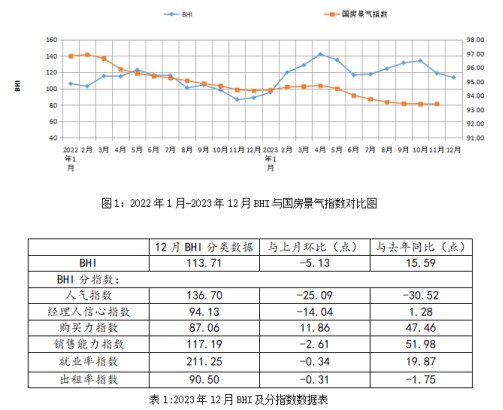全国建材家居景气指数BHI 12月份为113.71,环比下跌5.13点,同比下跌15.59点。全国规模以上建材家居卖场12月销售额为1290.82亿元,环比下跌2.17%,同比上涨79.72%;2023年全年累计销售额为15505.39亿元,同比上涨33.54%。