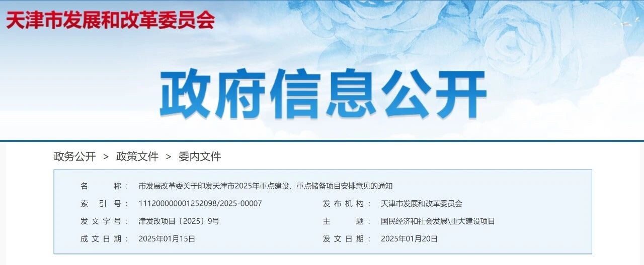 天津市发展改革委发布2025年重点建设、重点储备项目安排意见,共计1129个项目、总投资2.02万亿元。其中,包括重点建设项目854个,总投资1.52万亿元,年度计划投资2209.07亿元,均为在建续建或即将开工项目;重点储备项目275个,总投资4992.26亿元。