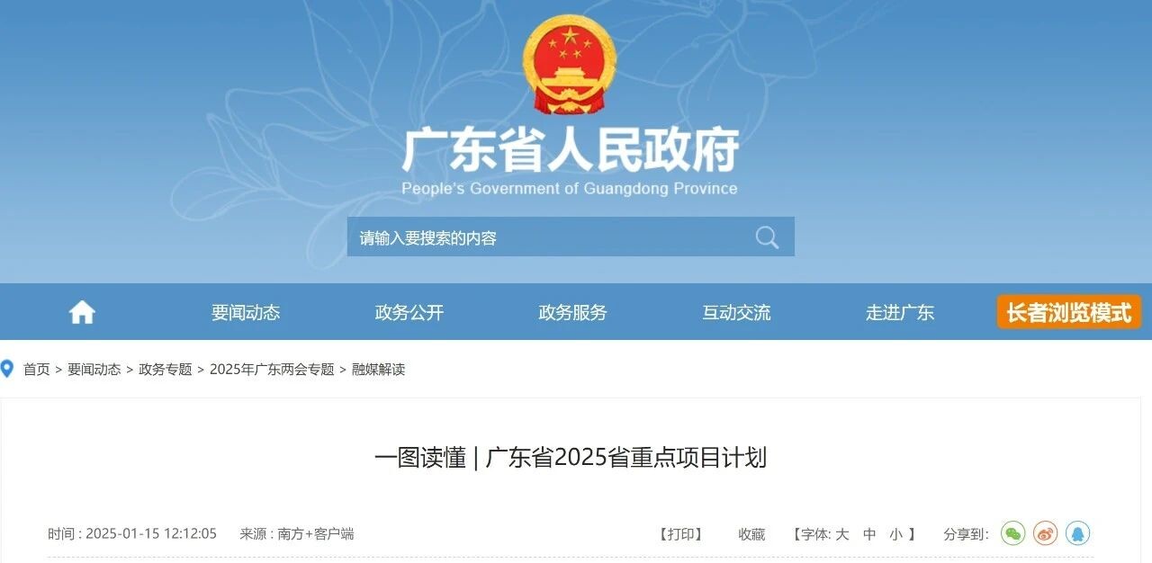 广东省政府工作报告显示,2025年广东安排省重点建设项目1500个、总投资约9.2万亿元、年度计划投资1万亿元。其中,续建项目1249个、力争投产项目291个、新开工项目251个。分行业来看,主要分为基础设施工程、民生保障工程、民生保障工程三大类。