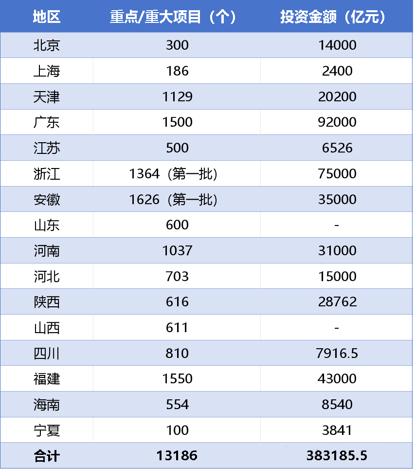 据不完全统计,截至目前,全国已有16个省市自治区发布2025年重点工程项目相关投资计划,总项目数超1.3万个,总投资额合计超38万亿元。