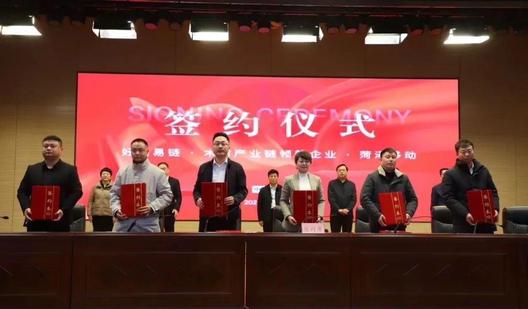 签约仪式上,曹县庄寨镇与市移动公司和好品易链公司达成了合作构建板材产业数字化发展服务平台项目。菏泽茂盛木业有限公司等4家企业与市移动公司、好品易链公司达成合作意向。