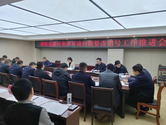 会上,泗阳生态环境局通报板材行业环境问题整改销号工作开展情况;县工信局解读《宿迁市“散乱污”企业“首 发问责制”管理办法(试行)》;开发区、高新区等相关单位分别作交流发言。